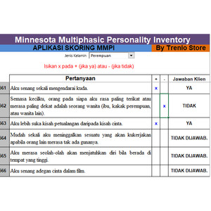 Dalam tes mmpi ada 567 pertanyaan dan 1 lembar jawaban dengan 2 pilihan dan.
